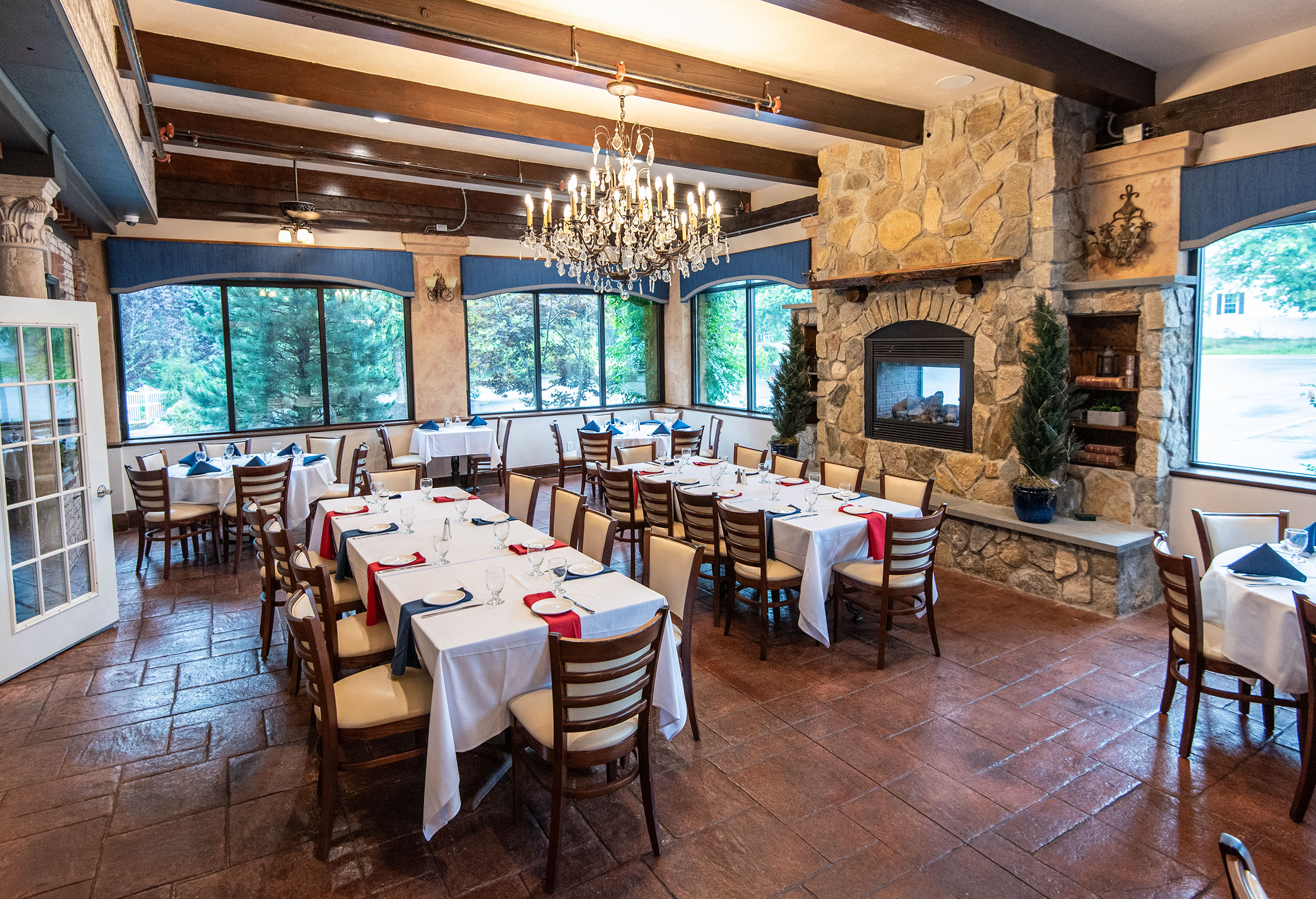 The New Bartlett Room at Coachmen's transports you to the charming streets of a European city, offering a unique and enchanting setting for your gatherings. Though completely enclosed, the room features a stunning floor-to-ceiling fireplace that adds warmth and elegance, creating a cozy atmosphere perfect for intimate celebrations. With a seating capacity for up to 35 guests, it’s ideal for small dinner parties, receptions, or casual get-togethers. For those looking to elevate the experience, opening the French doors to the adjoining space allows for a seamless flow, transforming the New Bartlett Room into a vibrant party venue. This combination of intimate charm and spaciousness ensures that your event will be memorable and enjoyable for all your guests.